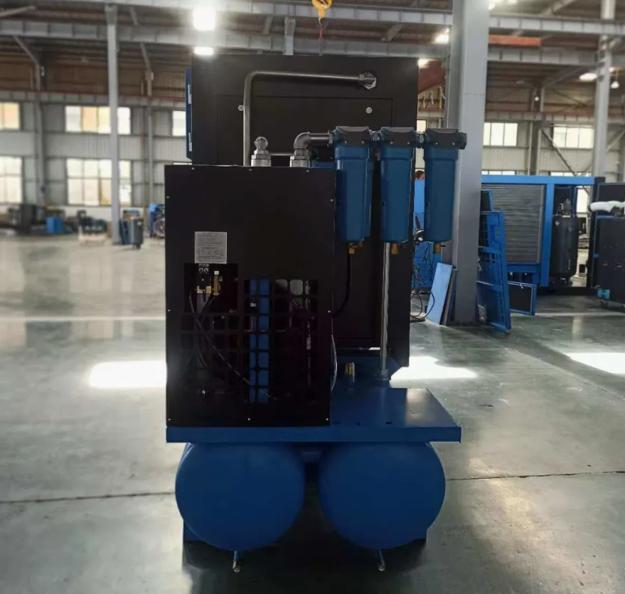 The clean and dry compressed air discharged from the special air compressor for laser cutting is partly supplied to the cutting head as cutting gas, partly supplied to the cylinder of the clamping table as a power source, and the last part is used to purge and dedust the optical path system.