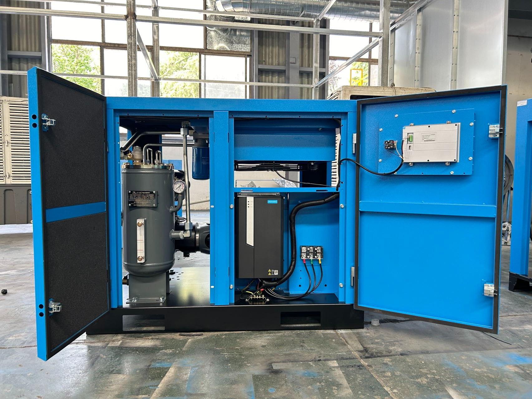 Hengchaowin permanent magnet variable frequency screw air compressor(PM VSD SCRW TYPE AIR COMPRESSOR) is a combination of permanent magnet rare earth synchronous motor (PM motor) and high-efficiency inverter to achieve 20-30% energy saving than ordinary screw air compressors