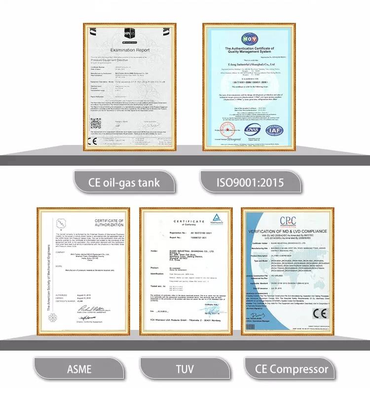 Many years of experience in production and export of screw air compressors, in compliance with EU CE standards, Southeast Asia ASME gas tank certificates and other requirements
